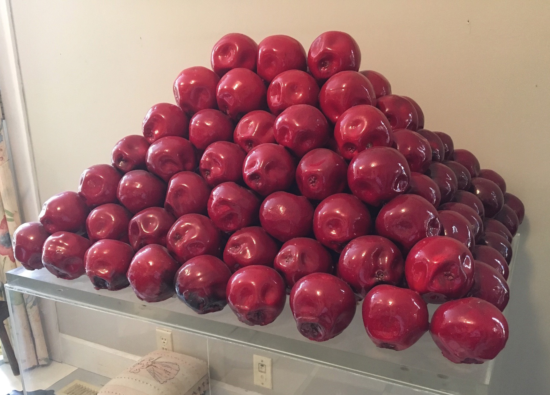 After being greeted by Gathie and welcomed into her home, my eyes are instantly drawn to a perfectly stacked grouping of shiny ceramic red apples. I have seen the apples before, on the websites that promote the work of this iconic artist and on the cover of her new book Apples, etc.: An Artist’s Memoir by Gathie Falk with Robin Laurence.
