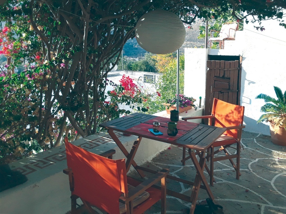 Terrace, village square, footpaths by the sea. Beyond the village, “outside” expands to an island small enough to be explored on foot. Goat paths and kalderimia (ancient cobblestoned trails) hug hillsides high above the Aegean and meander past a few toppled castles, a couple Byzantine monasteries, countless tiny white chapels hidden in groves of oleanders, and plenty of relics from bygone eras.