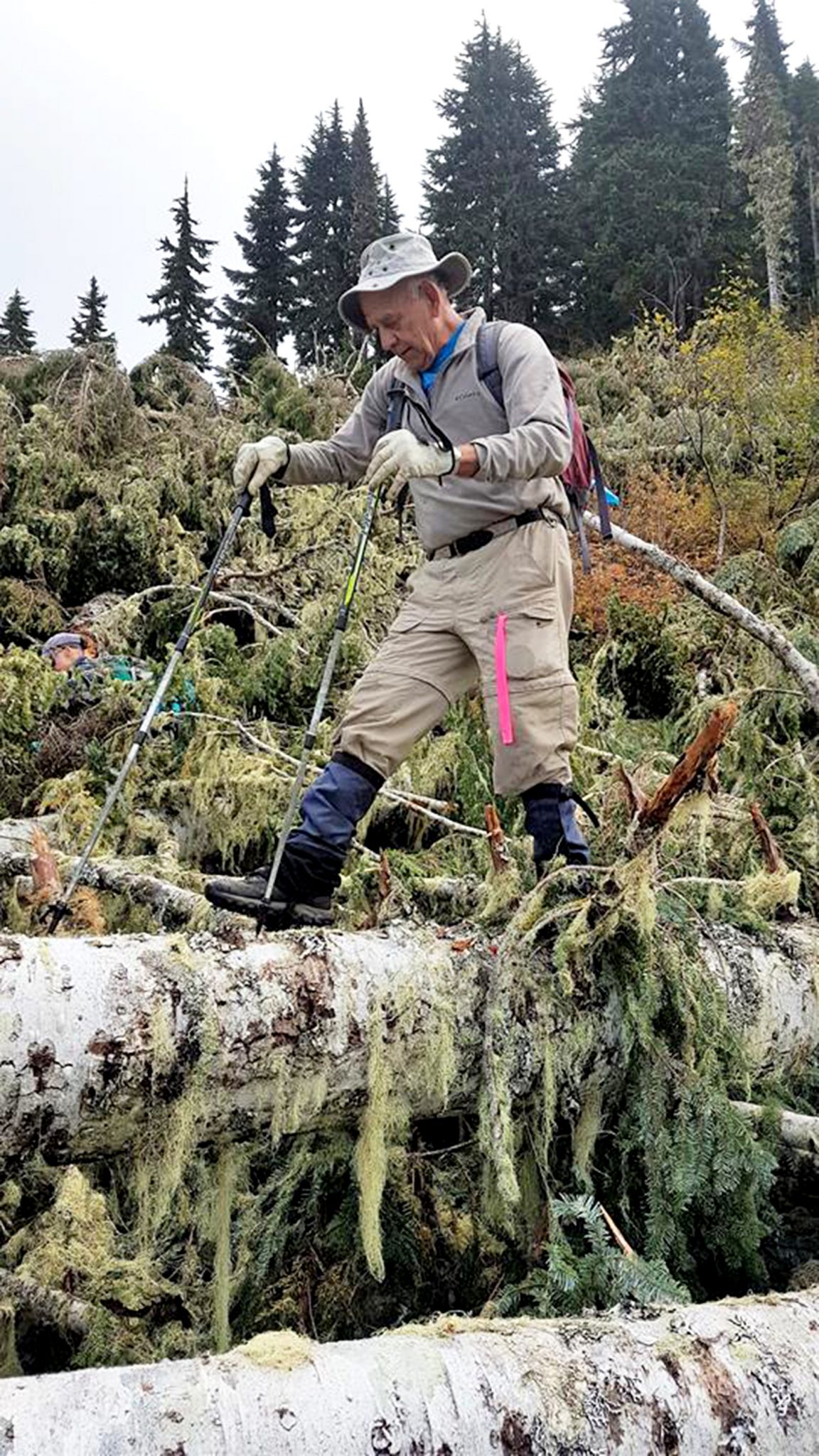 - Harry Schwartz balances on a fallen tree during a hike on Mt. McQuillan in October 2016. [Laurie Morphet photo]