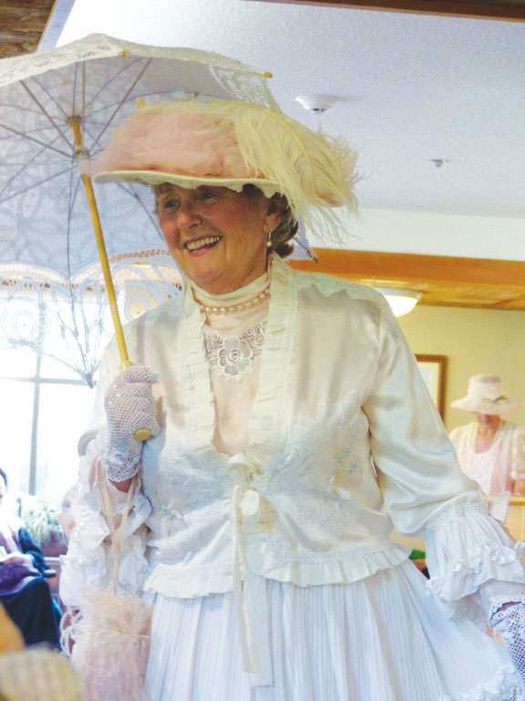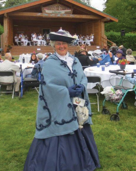 - Elaine, dressed in costume, at a Heritage Productions event in Victoria.
