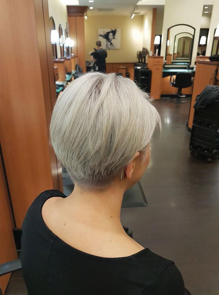 Riach says many women over 50 are looking to stop colouring and find a cut to show off the silver and gray without aging themselves in the process. That’s why the pixie cut is so popular.