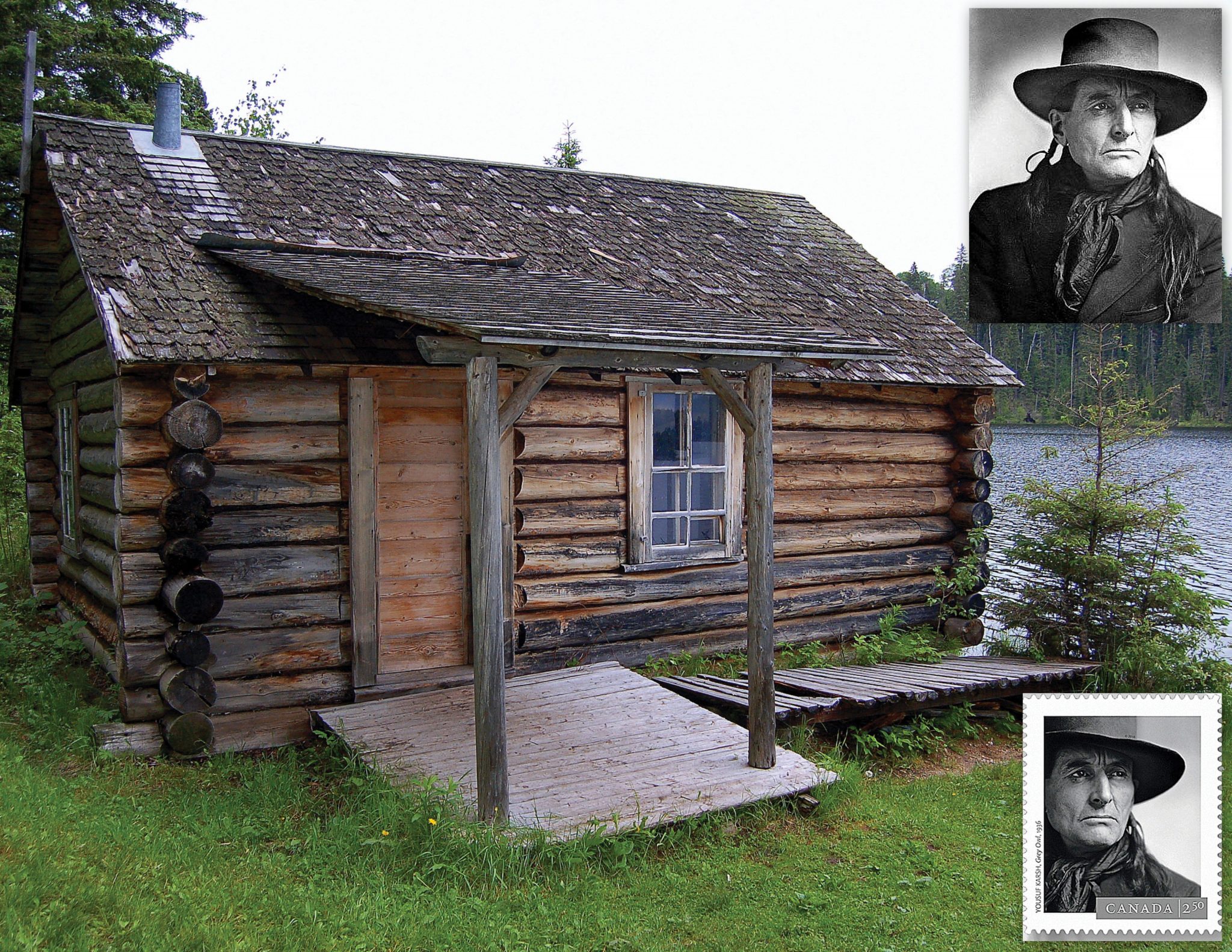 In 2016, Canada Post dedicated a postage stamp to Grey Owl (1888-1938). The black and white image is from a famous Karsh portrait of him donning a hat in 1936. In 1999, a fictionalized biopic was released, which starred Pierce Brosnan portraying the iconic conservationist.