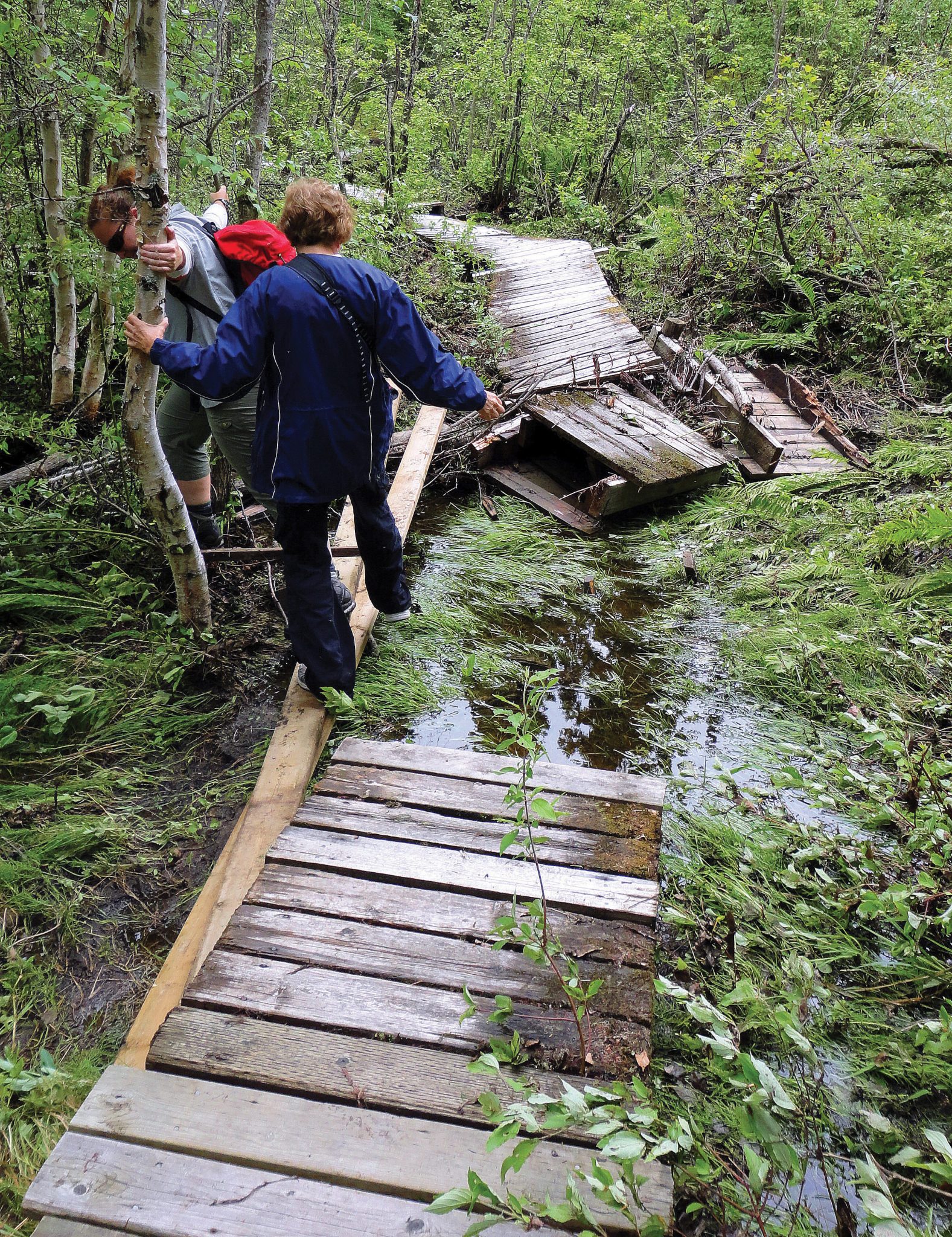 From a section of the shoreline en route, we viewed wildlife such as airborne eagles and loons scampering across the water to induce flight. We also viewed a few elk in the distance. Along the trail, Parks Canada provided sections of boardwalk to facilitate the hike, although some stretches were washed out during our soggy and boggy springtime trek.