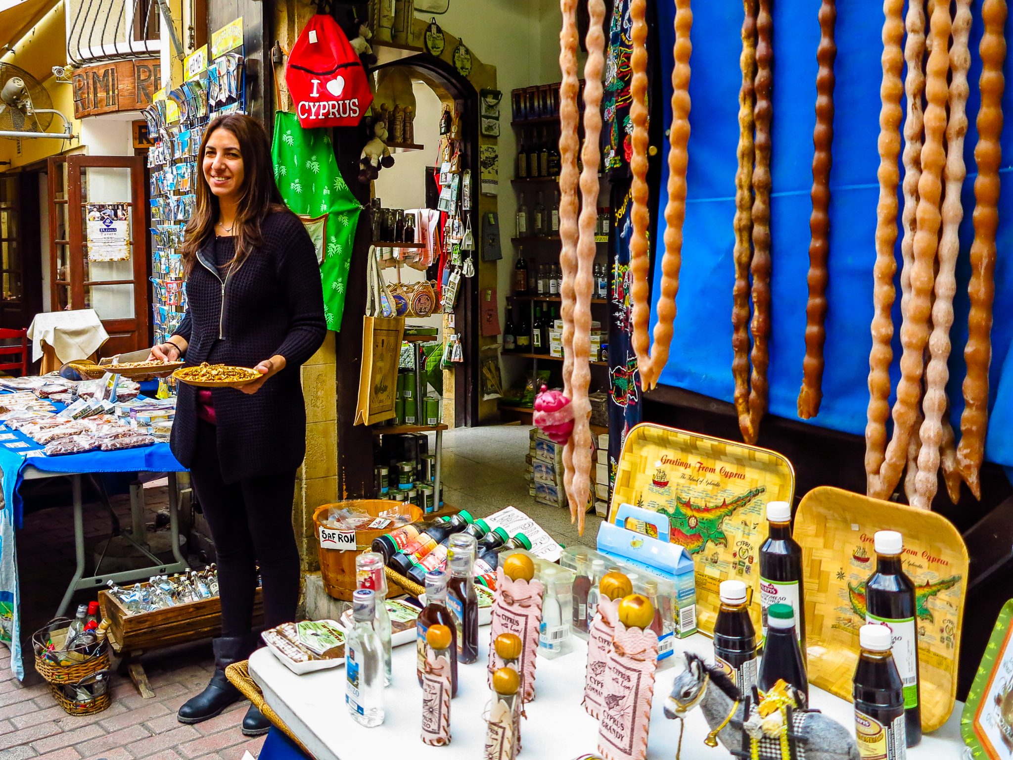 - A Cyprian merchant selling Soutzoukos, a traditional candy. Photo by Rick Butler.