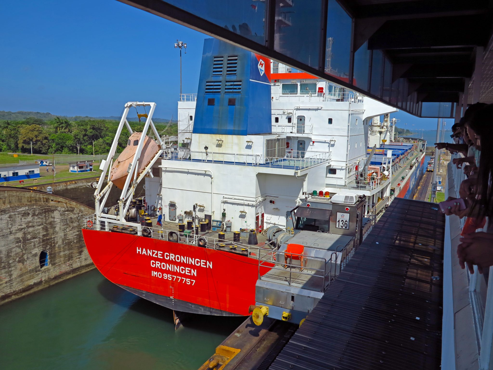 9. Ship passes under our noses, Gatun Lock