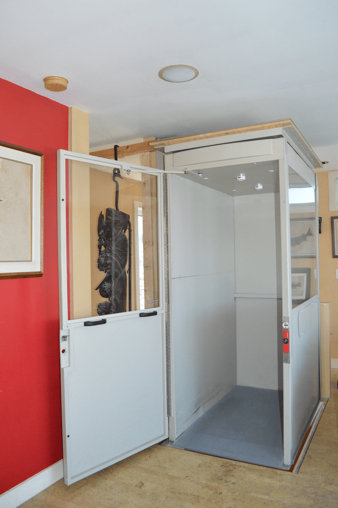 - The elevator in the Leffs’ float home allows Susan to access the upper floor, even in her wheelchair. Photo by Bailey Martens.