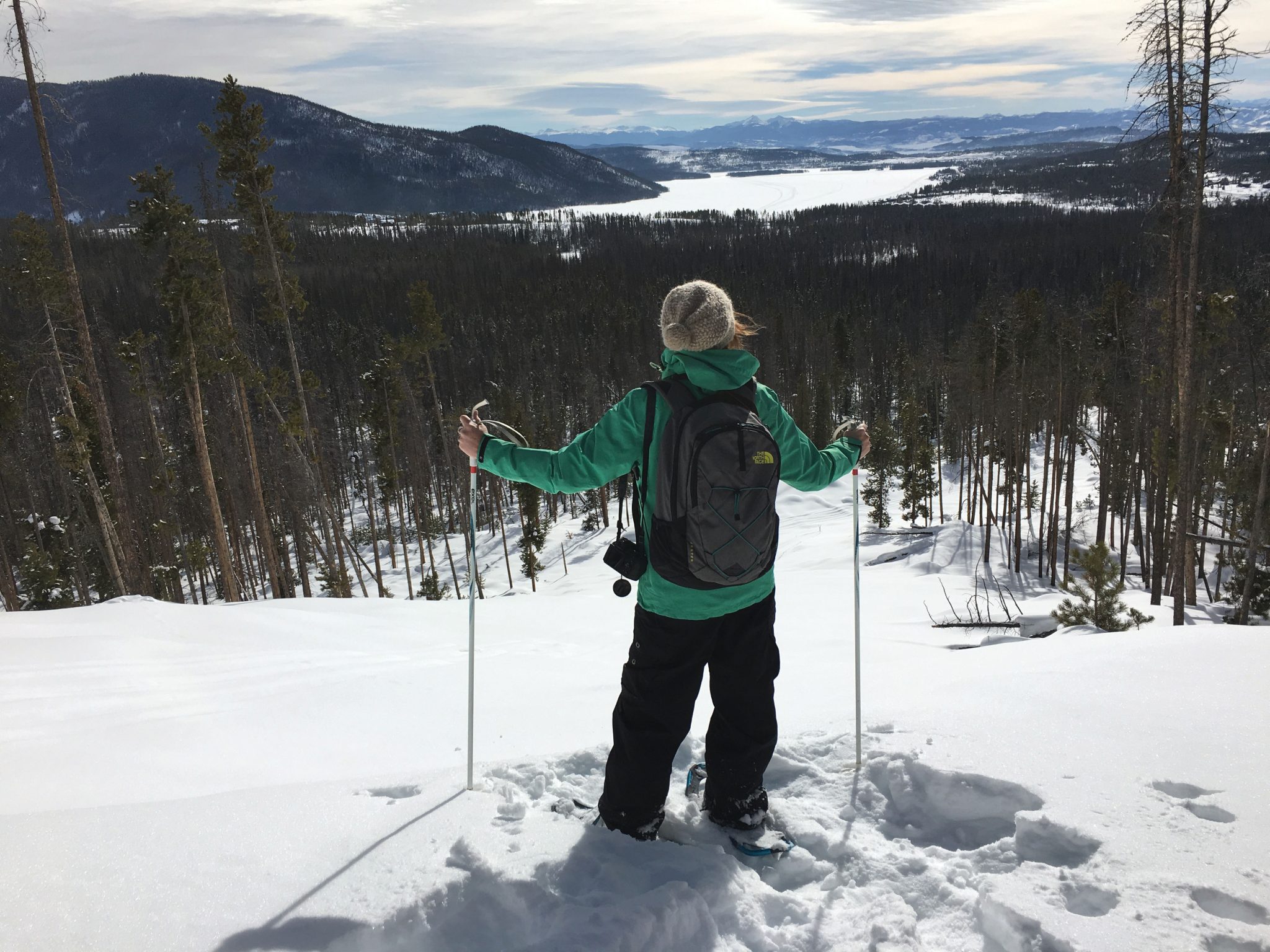 - Snowshoeing, overlooking Grand Lake