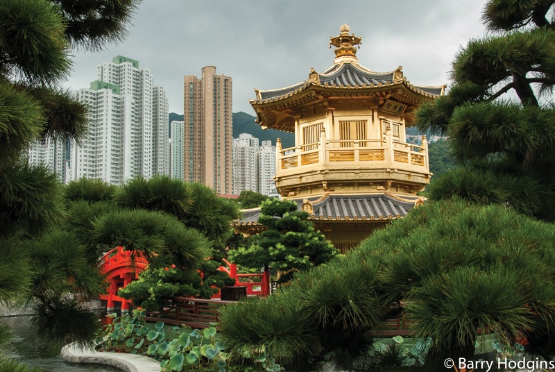 The Chinese classical style garden, almost the size of San Francisco’s Alamo Square Park, shields the nunnery from the outside world. Constructed by the Chi Lin Nunnery in cooperation with the Hong Kong government, the garden and temples have provided a daily place of respite for the public, free of charge, since 2006. The four major elements of a traditional garden, hillocks and rocks, water features, timber structures and ornamental trees, are designed to create a peaceful escape from the city life outside its walls.