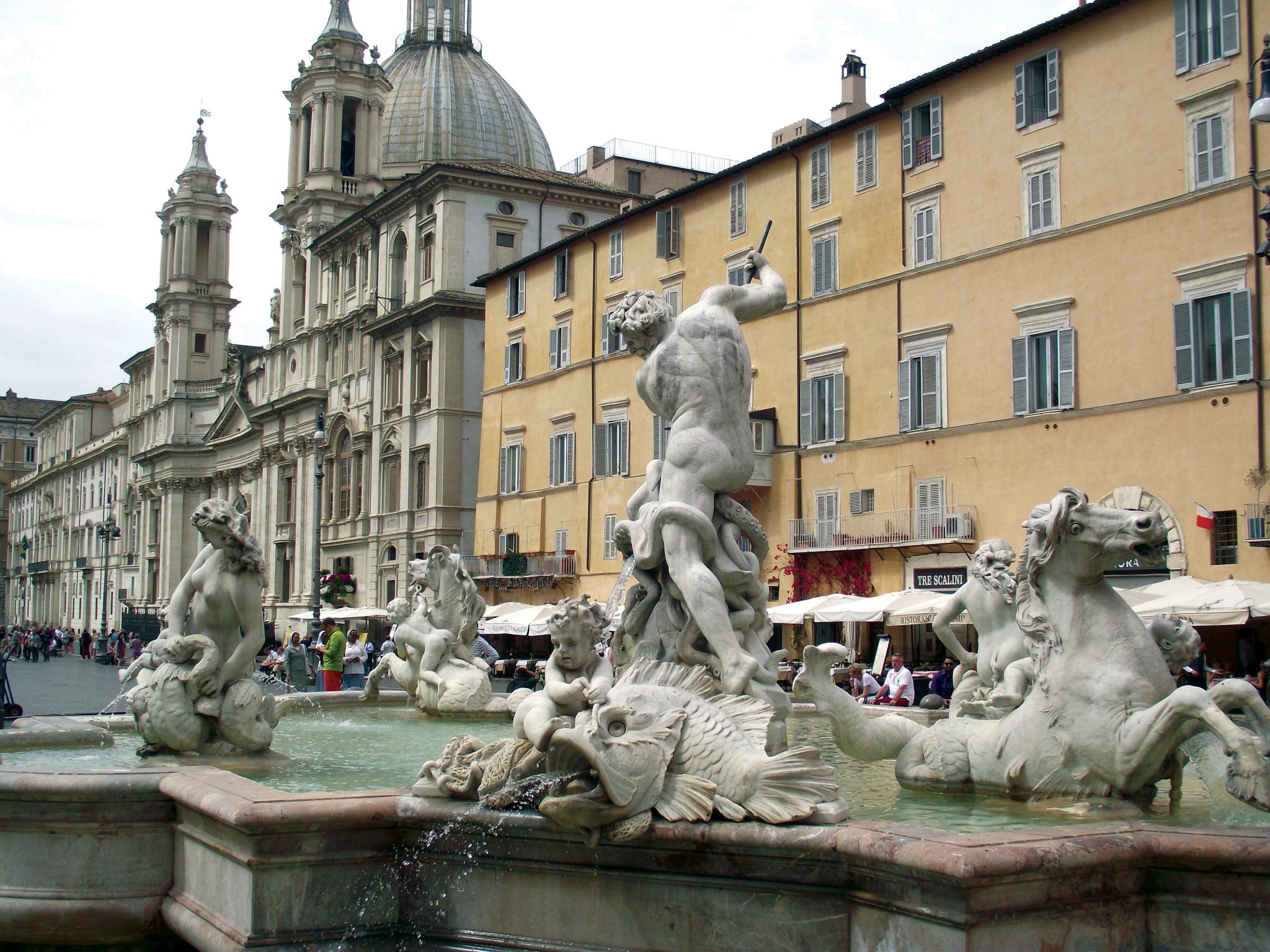 The Trevi Fountain was mesmerizing. Like Michelangelo before him, Bernini had turned cold, inert stone into expressive, dynamic and energetic figures. Unfortunately, the geography of the place funnels everyone into a very small area, and standing beside the Trevi required patience navigating the souvenir hawkers, the Poliza and the rest of humanity. Thankfully, there were other Bernini sculptures equally as dramatic 10 minutes away at the less crowded Piazza Navona.