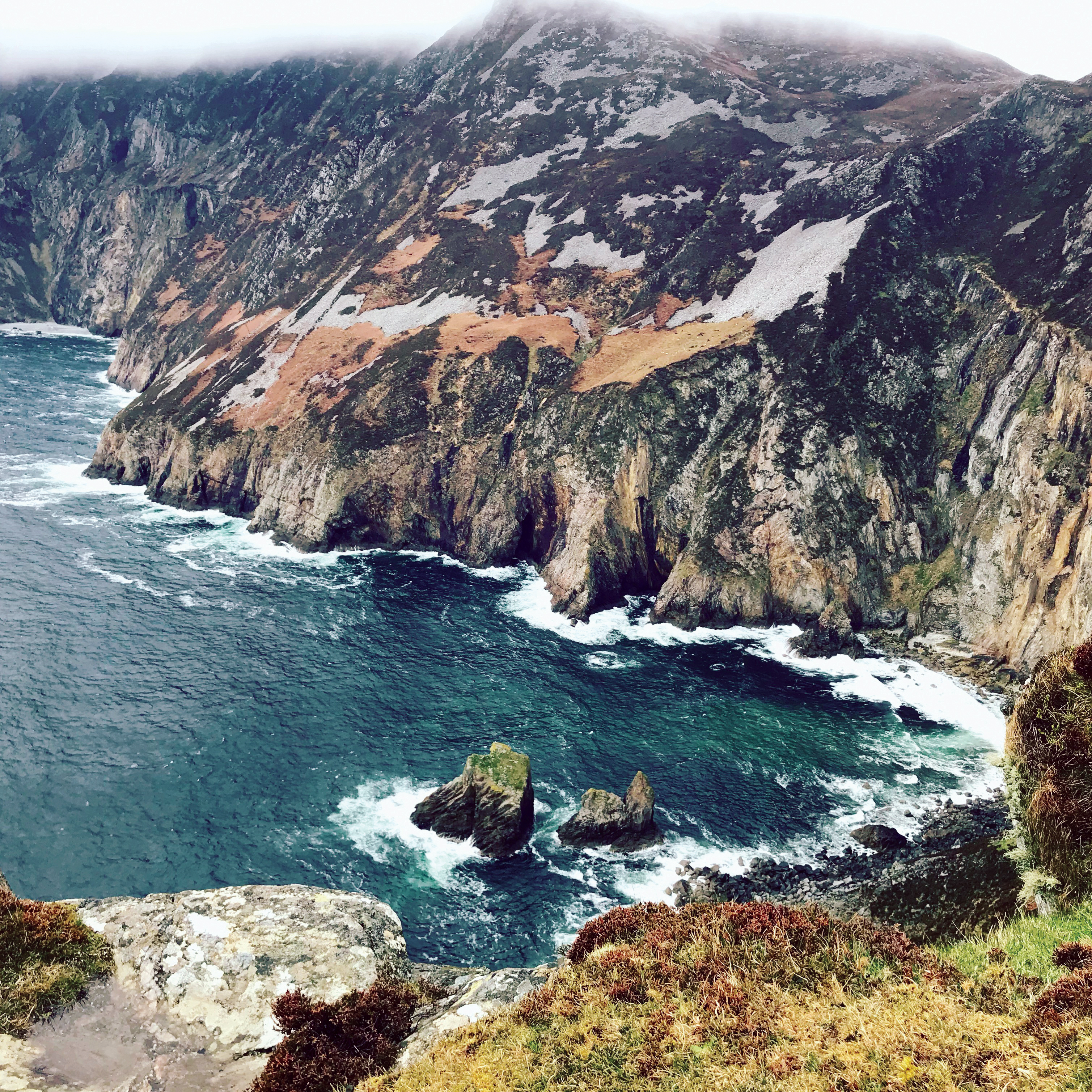 During my visit, I learn well about the rain that keeps Ireland its unique emerald colour, but nowhere is it raining harder than at Sliabh League, one of the most iconic points on the Wild Atlantic Way. At 600 metres, these are Ireland’s highest sea cliffs – once considered a sacred spot and part of a Christian pilgrimage trail. I brave the gale force winds to hike to the top of the cliffs, where the first peep from beneath my raincoat hood at the misty panoramic view of the rugged Atlantic, nearby Sligo Mountains, and Donegal Bay makes me forget it’s storming.