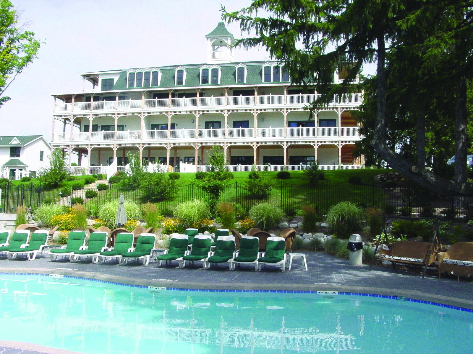 Close to the Osthoff is Victorian Village Resort, another vintage property that was first built in 1872 and rebuilt after a fire in 1891. While lovingly updated, it still has much of what has brought guests here for so many years. Many rooms have big balconies overlooking the lakeside beach and outdoor pool (there’s also an indoor pool). The variety of buildings give it the feel its name espouses – that of a little vacation village. There’s even a traditional theatre where summer productions are put on to the delight of visitors and residents alike. The friendly staff includes long time employees and enthusiastic young locals. Join the fun and partake of the fine home cooking at the excellent Back Porch Bistro (once a speakeasy). Grab a cocktail or a cone and the lively Barefoot Tiki Bar.