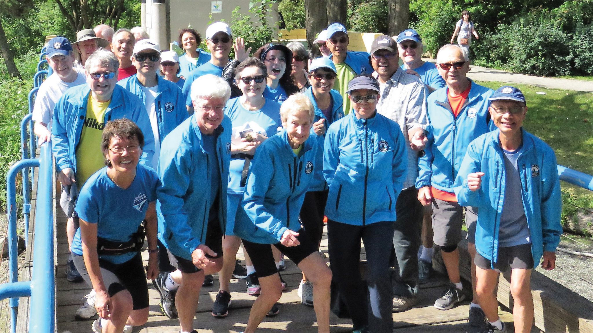 The glue is the Forever Young Walk/Run Club that meets Monday and Wednesday mornings (2/3 walkers and 1/3 joggers) to exercise and socialize. It’s an e-mail-and-newsletter-linked community.